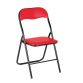 Material: asiento y respaldo tapizado en vinilo. Estructura de metal lacada epoxi negro Ø 22 mm. Relleno: asiento y respaldo acolchados. Densidad del asiento y respaldo: 21 kg/m3. Tacos antideslizantes. Medidas Asiento: An. 37,5 cm x Fon. 38,5 x Alt. 44 cm. Respaldo: Alt. 15 cm. Grosor de la silla plegada: 5,5 cm. Peso: 3,6 kg.