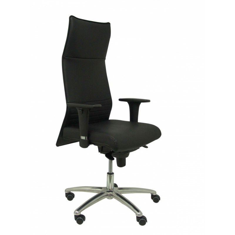 Regulable en altura mediante cilindro de gas de 10 cm(siendo su altura en la posición más baja de 50 cm y la más alta 60 cm) Mecanismo sincro multiposición con regulador de la presión del sincro(permite la regulación del asiento y el respaldo de manera independiente) Asiento y respaldo tapizados en similpiel Brazos regulables en altura de poliuretano color negro y acabado cromado Ruedas de parquet, gas cromado y giratoria 360º