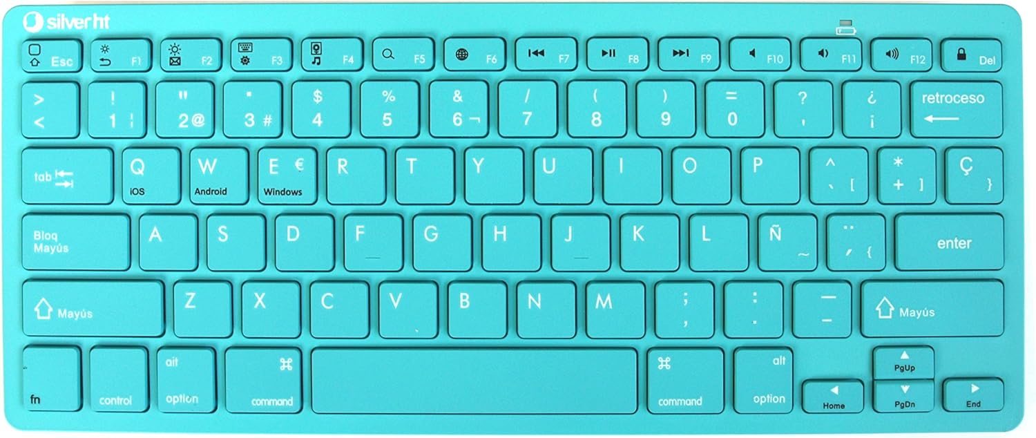 SilverHT - Teclado Inalámbrico en español, Incluye la Letra Ñ, Ideal para Ordenadores, Smart TV, Tablets y Smartphones.Turquesa