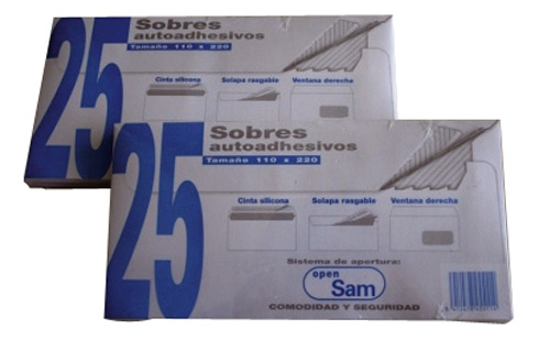 Está en ofertaSobres 115 x 225 mm 90 g con ventana derecha Sam - Caja de 500desde36,69 € sin IVA29,55 € sin IVAHasta -19%Sobres 115 x 225 mm 90 g con IP Sam - Caja de 5001 opinióndesde29,55 € sin IVASobres 90 x 140 mm 80 g - Caja de 50030,59 € sin IVA21,45 € sin IVAPromo -29%Sobres 115 x 225 mm 90 g Sam - Caja de 5001 opinióndesde36,69 € sin IVA29,55 € sin IVAHasta -19%Sobres reciclados 115 x 225 mm 90 g Sam - Caja de 50039,89 € sin IVA27,95 € sin IVAPromo -29%Sobres reciclados 115 x 225 mm 90 g con ventana derecha Sam - Caja de 50043,85 € sin IVA30,75 € sin IVAPromo -29%