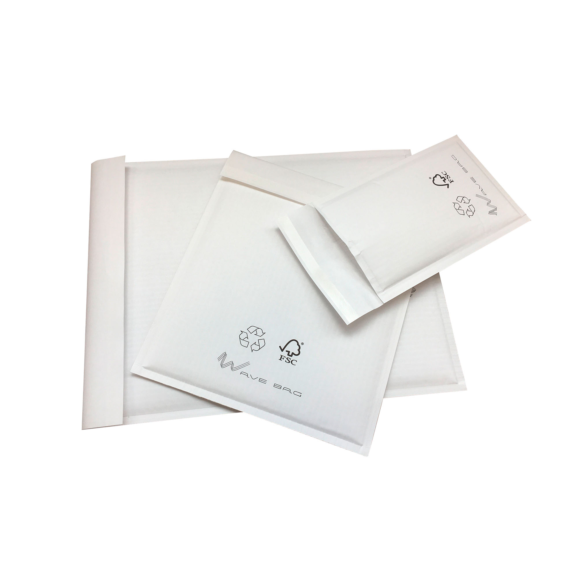 Sobres acolchados con protección interior de burbuja de papel. 100% reciclables y sin plástico.