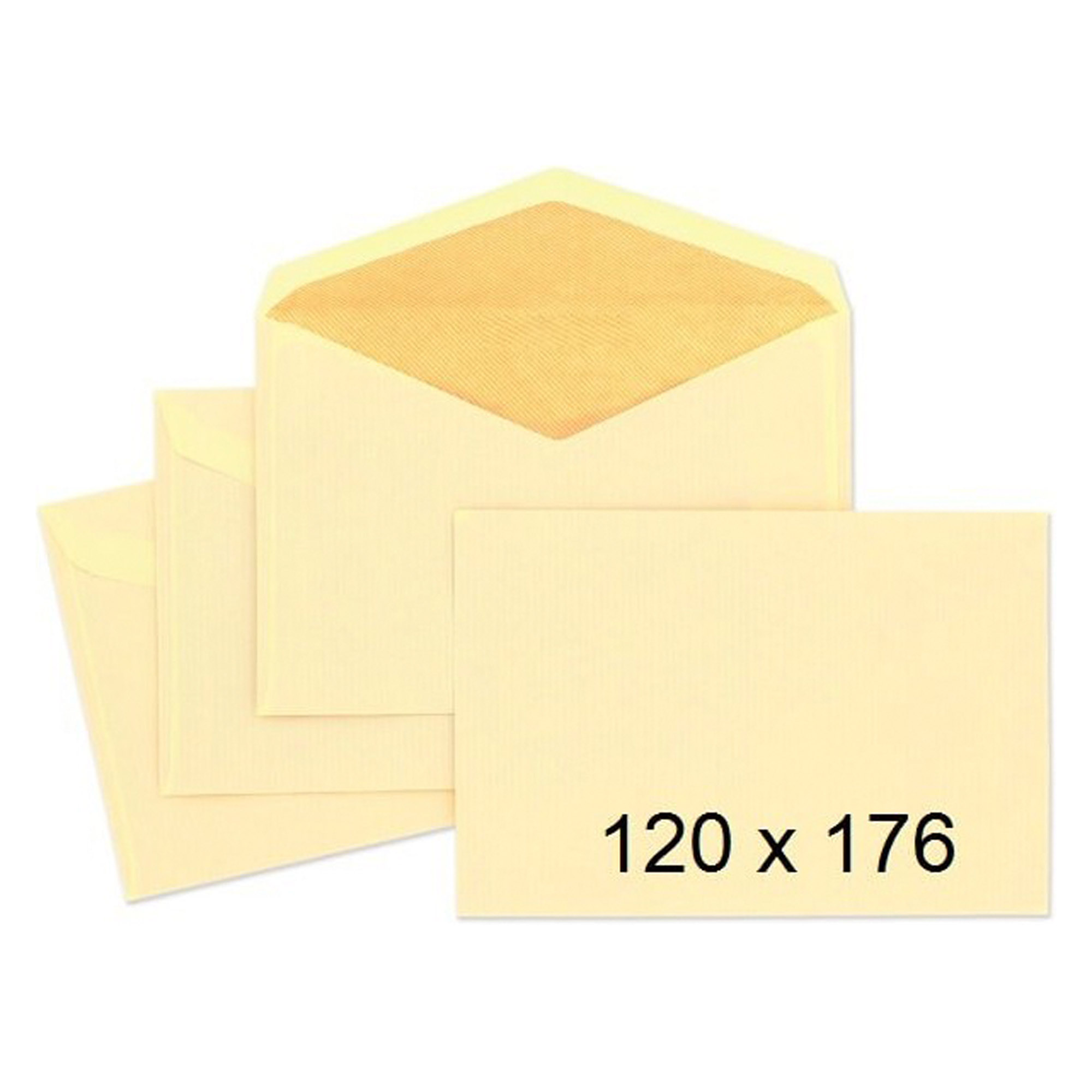 Sobres de caña en formato 120 x 176 mm (Comercial). Especial para impresión y ensobradoras. Fabricado en papel de 63 g. Solapa en pico. Cierre humectable. Sin apertura fácil. Sin ventana. Caja de 500.
