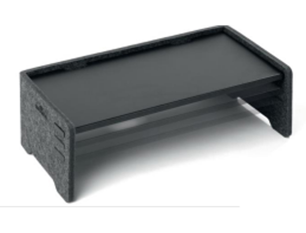 Descripción detalladaSoporte para monitores y ordenadores portátiles fabricado con fieltro PET reciclado. Triple ajuste de altura para una postura postura ergonómica al trabajar con monitores. Varias salidas de cables para un escritorio limpio.