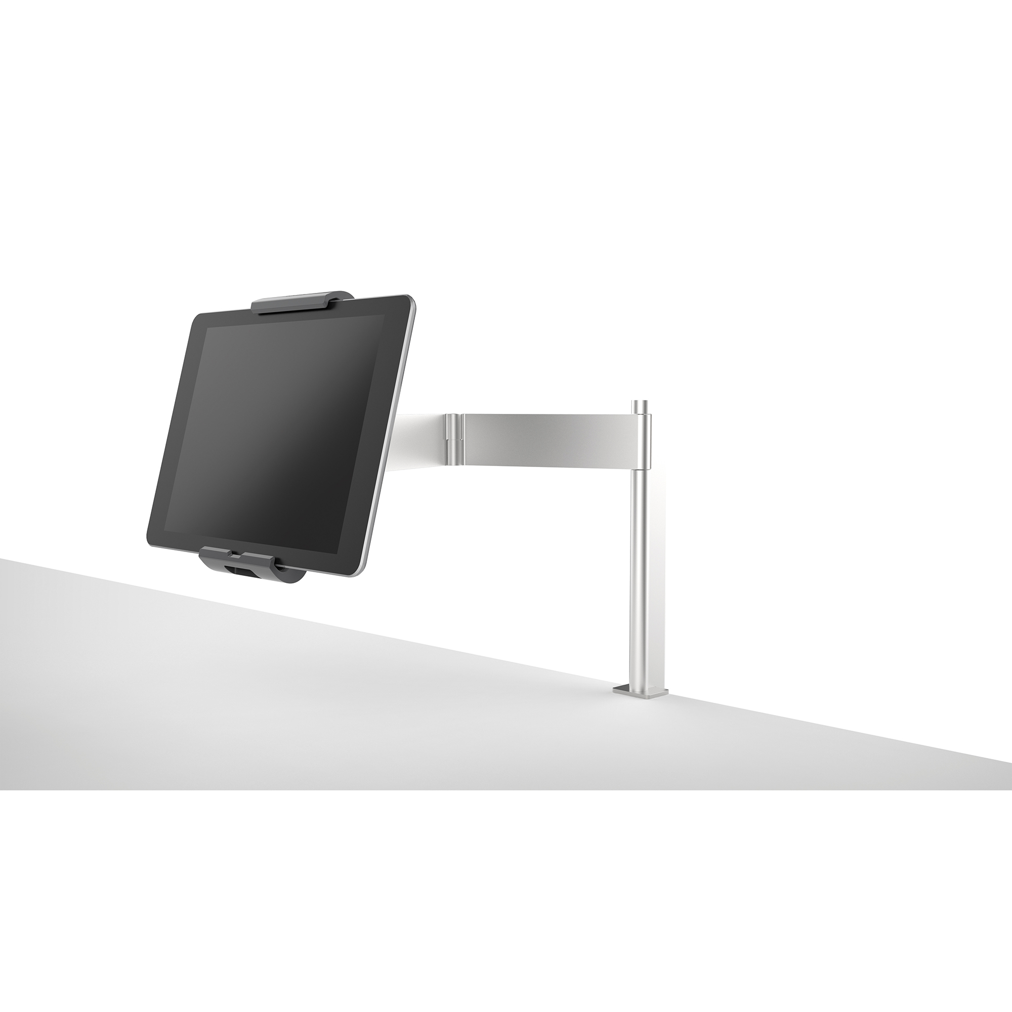 El soporte de mesa con brazo articulado se adapta perfectamente a la necesidad de ergonomía y organización del espacio de trabajo. Gracias a su sencillo sistema de fijación y a su brazo articulado, permite utilizar una tableta al mismo tiempo que se dispone de un puesto de trabajo claro. Gracias a su brazo articulado extremadamente fuerte, este soporte permite un uso intensivo de la tableta.