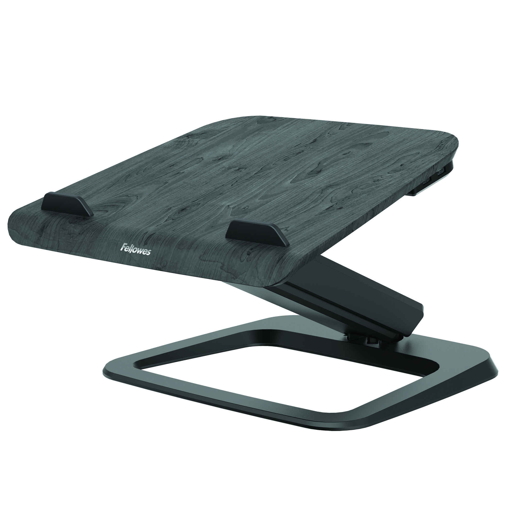 Eleva el portátil a una posición de visión cómoda para reducir la tensión en los ojos, cuello y los hombros. Sistema de muelle a gas para ajustar la altura sin esfuerzo entre 102 - 406 mm. Inclinación máxima de 45 º, movimiento rotario de 90º lo que permite compartir la visualización de la pantalla. Equipado con 4 puertos USB para mantener los dispositivos alimentados: 2 USB 2.0 (Tipo A) y 2 puertos de carga rápida 2.1A (Tipo A). Gestión de cables incorporado. Base de aluminio y plataforma de madera, disponible en blanco o negro.