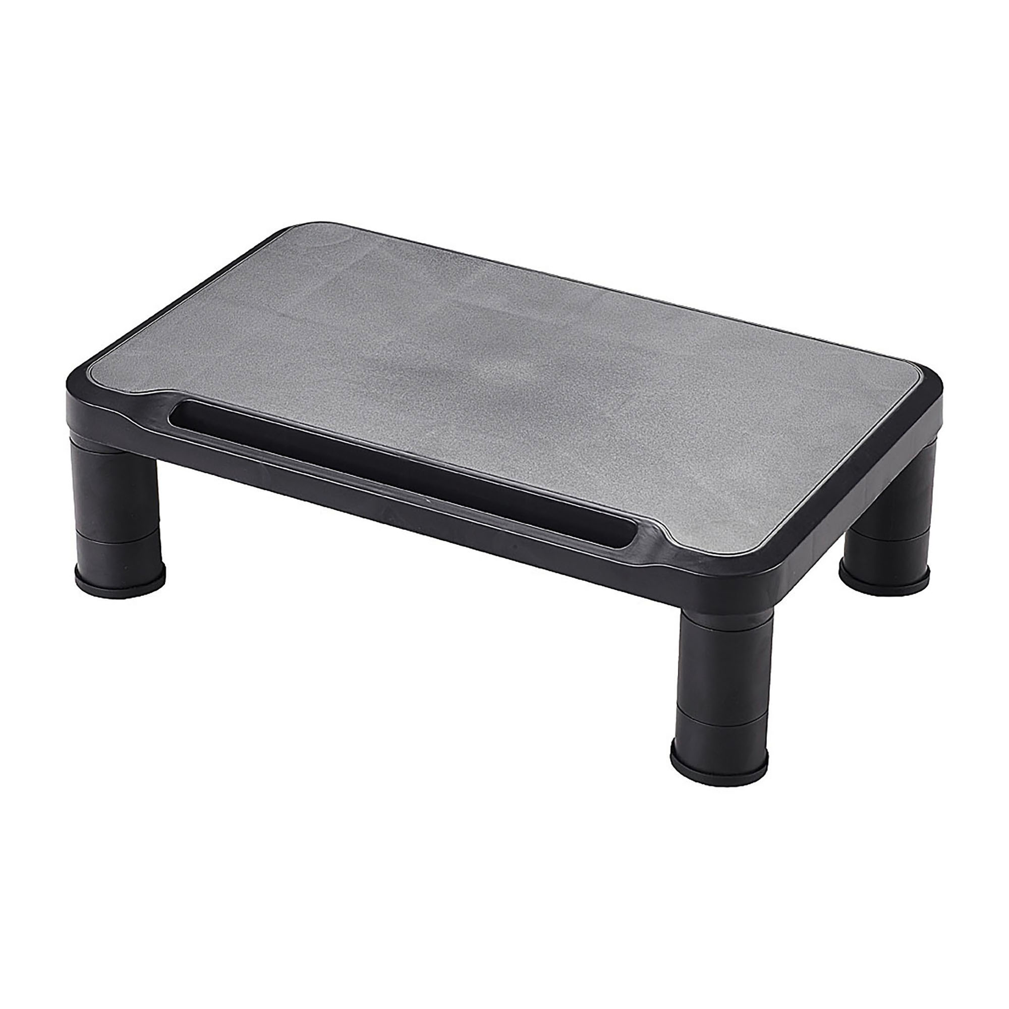 Descripción detalladaSoporte para monitor ajustable en altura. Se puede ajustar a 3 alturas: 62 / 82 / 112 mm. Color negro. Dimensiones: 380x240x112 mm