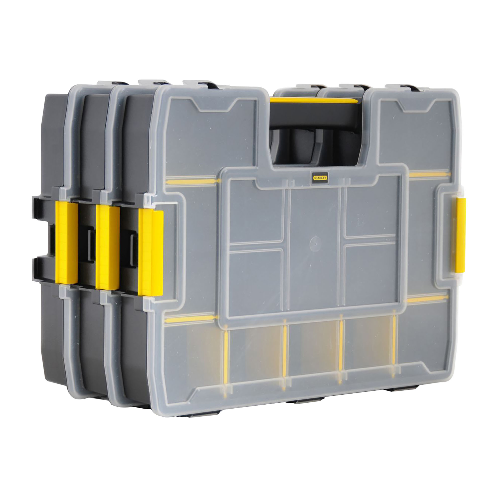 Esquinas ampliables según sus necesidades, diseñadas para poder almacenar herramientas que requieran un espacio modular. Este organizador permite combinar el almacenamiento de herramientas y piezas pequeñas. Compartimentos con separaciones modulables. El diseño interior de la tapa previene el desplazamiento involuntario de las piezas durante el transporte. Posibilidad de transportar hasta 3 unidades a la vez.