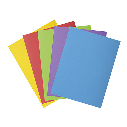 Las carpetas están disponibles en 5 colores surtidos : amarillo limón, rojo, verde, morado y rojo.
