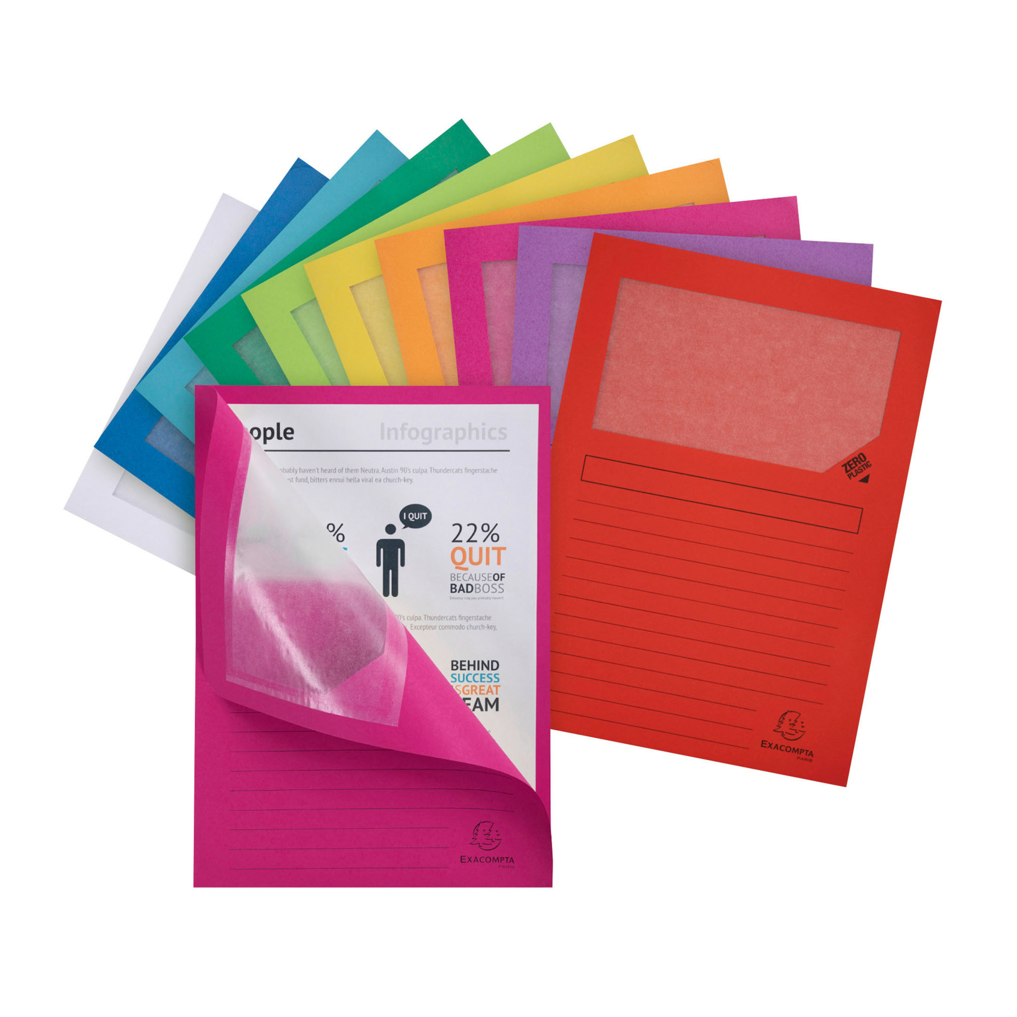 Subcarpetas con ventana transparente y cierre en forma de L, ideal para identificar fácilmente los documentos.