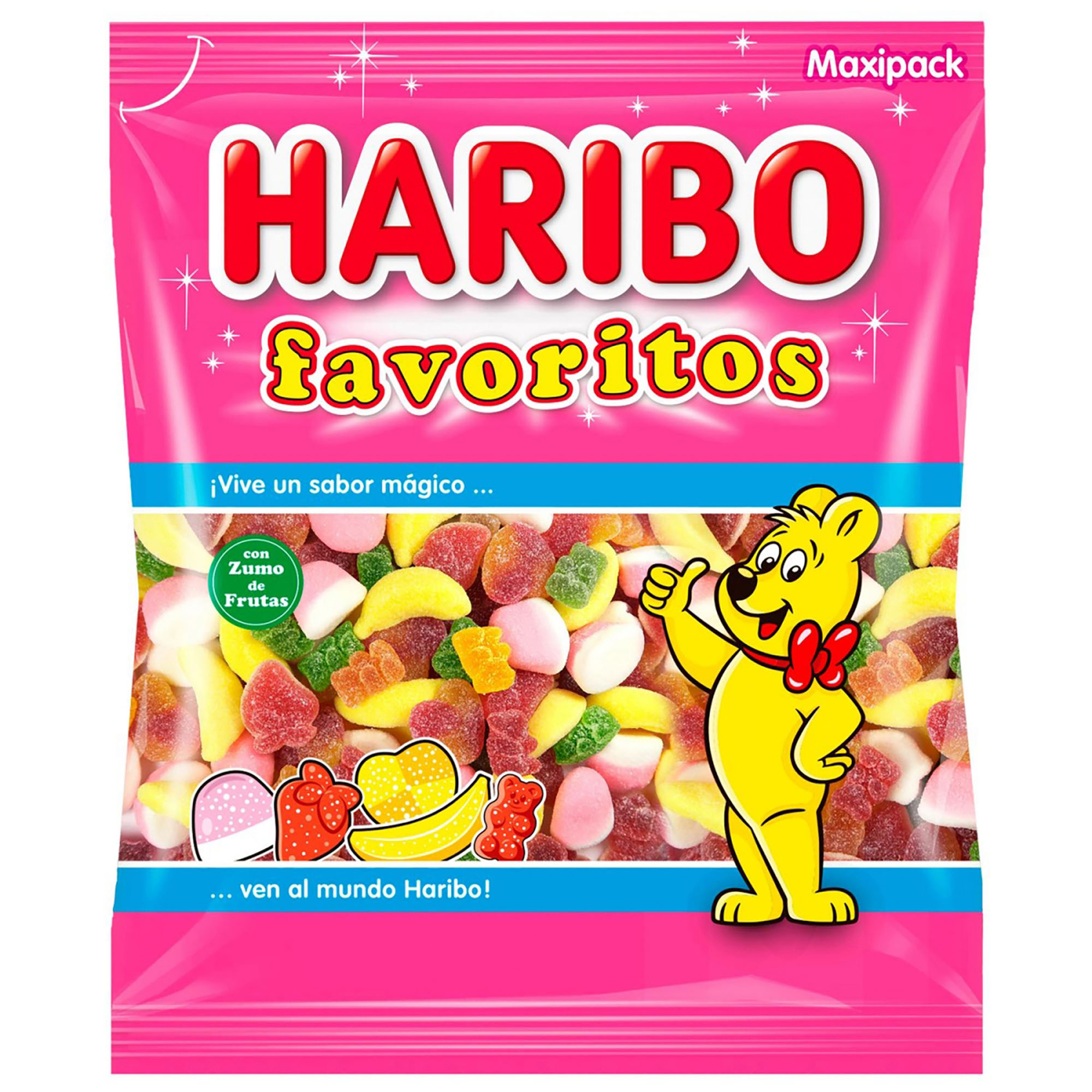 Ingredientes: Jarabe de glucosa; azúcar; agua; zumo de frutas a partir de concentrado (5 %): limón, fresa, cereza, naranja, manzana, piña; humectante: jarabe de sorbitol; gelatina; dextrosa; acidulante: ácido cítrico; gelificante: pectina amidada; corrector de acidez: citrato trisódico; aroma; concentrados de frutas y plantas: grosella negra, baya de saúco, aronia, uva, rábano, cártamo, naranja, limón, mango, fruta de la pasión, espirulina, manzana; extracto de baya de saúco; jarabe de caramelo; colorante: curcumina; jarabe de azúcar invertido. Puede contener trazas de LECHE, TRIGO.