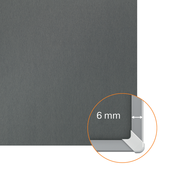 Tablero de anuncios de fieltro de 600x450mm con un marco fino y un sistema de montaje InvisaMount™.