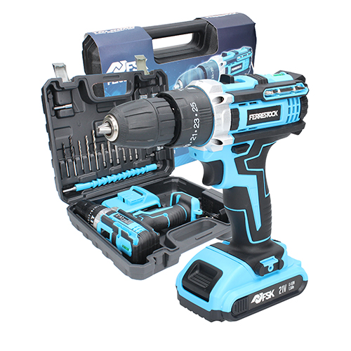 Taladro percutor 21 con batería 1,5 Ah con 25 accesorios Ferrestock.
