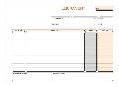 Descripción detalladaTalonario de entrega horizontal. Transcripción sin carbón. Papel 60 g. Formato 210 x 150 mm apaisado. 3 copias Catalán (50 hojas blancas, 50 hojas amarillas, 50 rosas).
