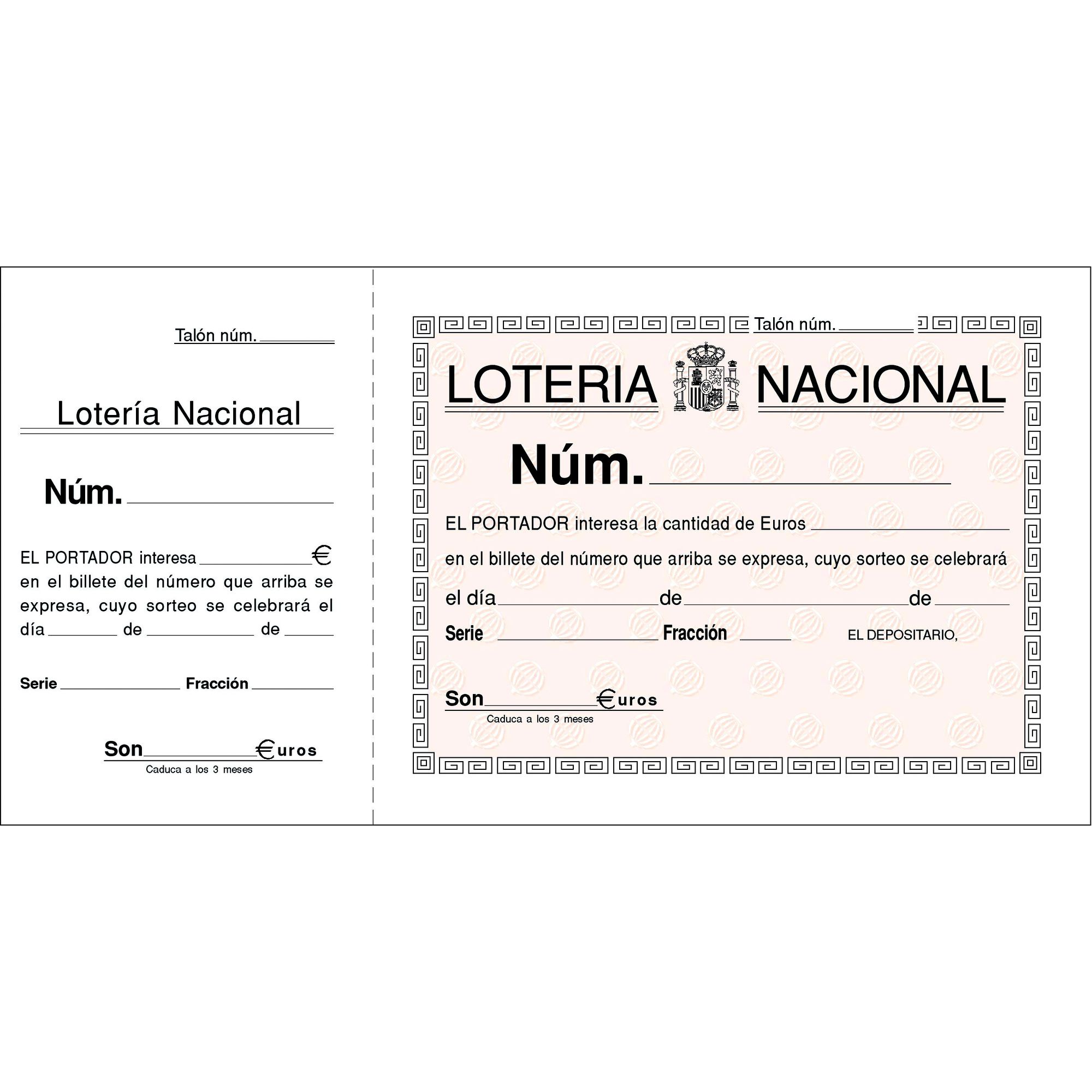 Descripción detalladaTalonario de lotería horizontal. Transcripción sin carbón. Papel 60 g. Formato 210 x 105 mm apaisado. 1 copia Castellano (100 hojas blancas).