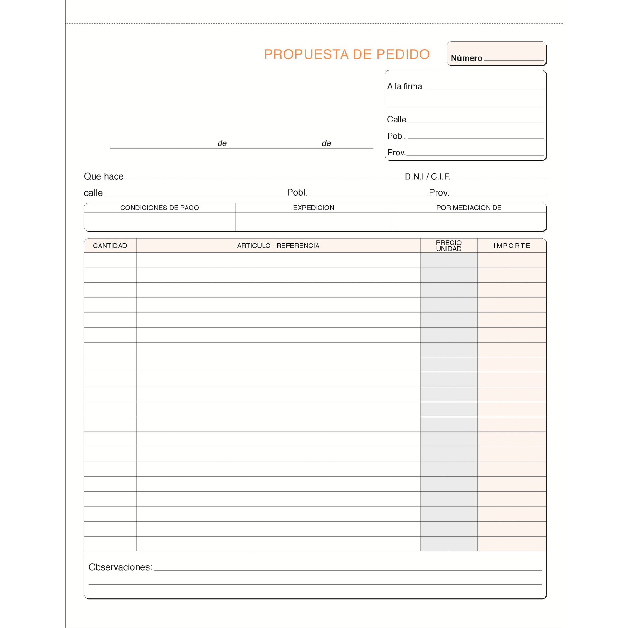 Descripción detalladaTalonario de pedido vertical. Transcripción sin carbón. Papel 60 g. Formato 215 x 265 mm natural. 1 copia Castellano (100 hojas blancas).