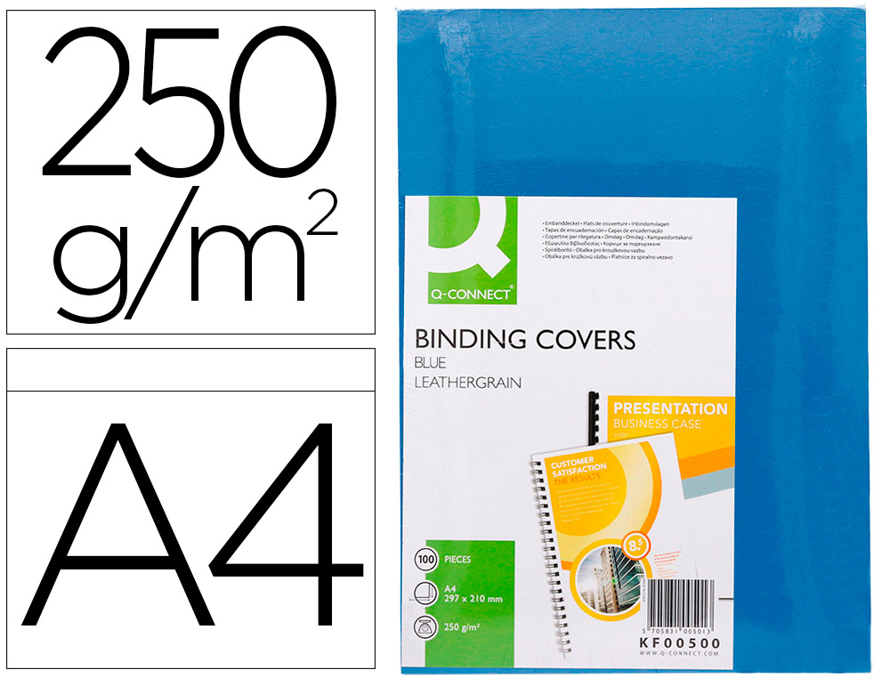 Descripción detalladaTapa de encuadernación en cartón símil piel de 250 g/m². Válida para espiral canutillo, anillas y otros. Formato DIN A4. El pack de 100 unidades.