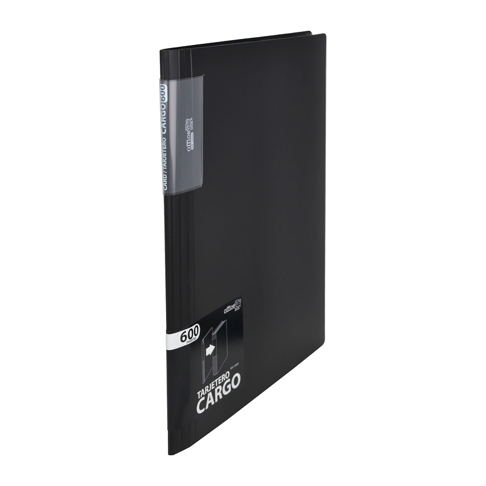 Descripción detalladaTarjetero de polipropileno negro para 608 tarjetas de visita. 8 tarjetas por página.Lomo de 30 mm personalizable. Fundas con pestañas para clasificación. Etiquetas de colores incluidas. Tamaño: 230 x 280 mm.