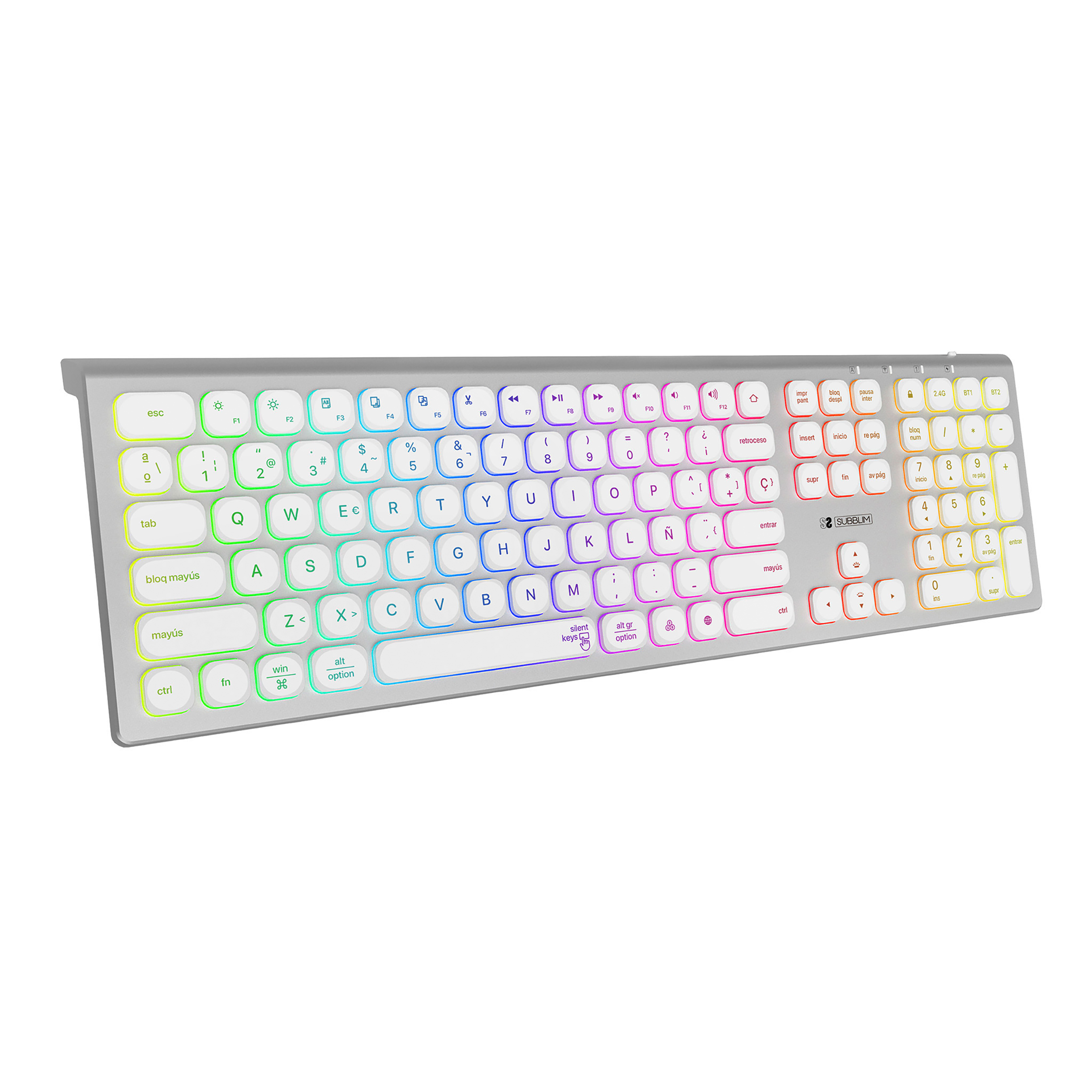 El Teclado Inalámbrico SUBBLIM Master soporta 3 dispositivos mediante dos canales con tecnología inalámbrica Bluetooth 5.2 y uno a través de un receptor USB RF 2.4G.