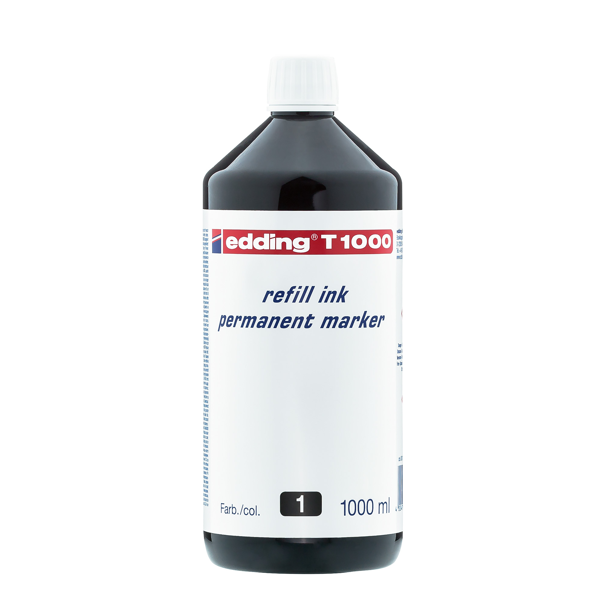 Frasco de tinta de 1 litro para rellenar los marcadores edding permanentes, la forma más económica de usar los marcadores permanentes es rellenándolos, con cánula para su fácil volcado.