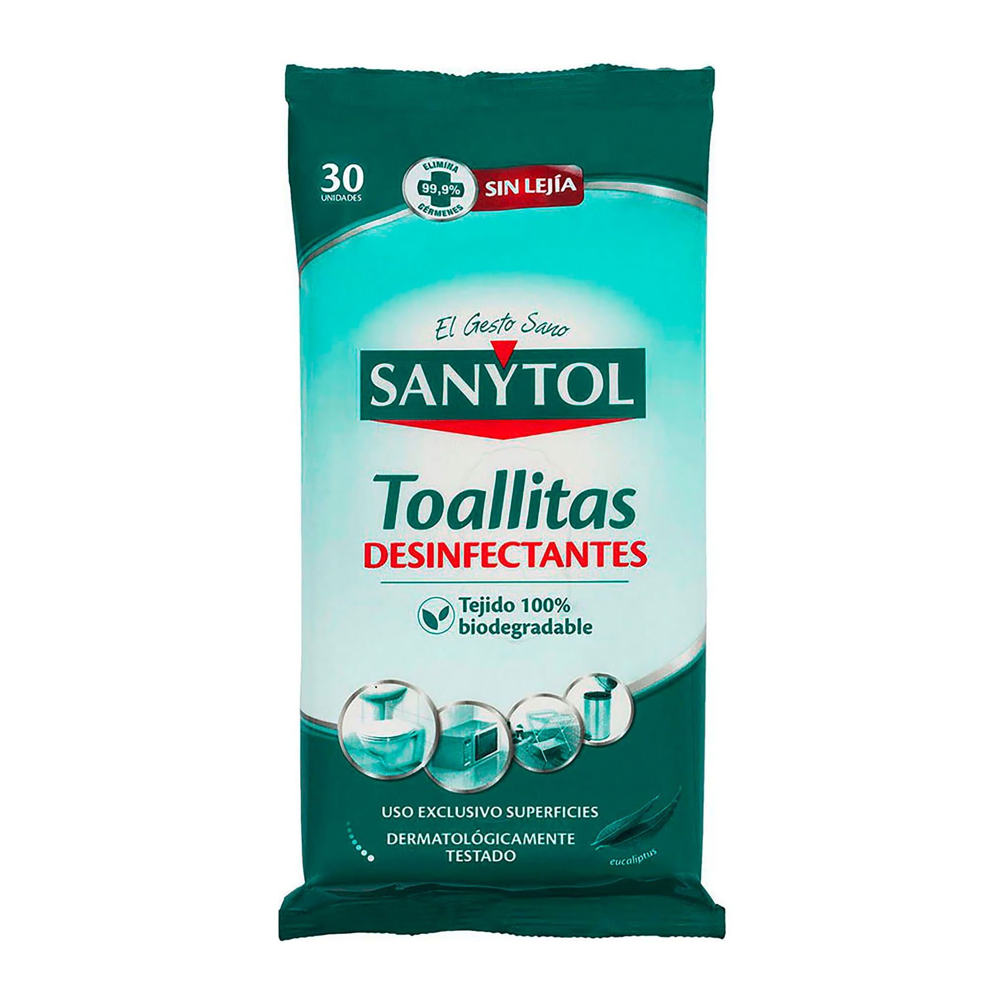 Toallitas desinfectantes multisuperficies que eliminan el 99,9% de los gérmenes de forma rápida y cómoda.
