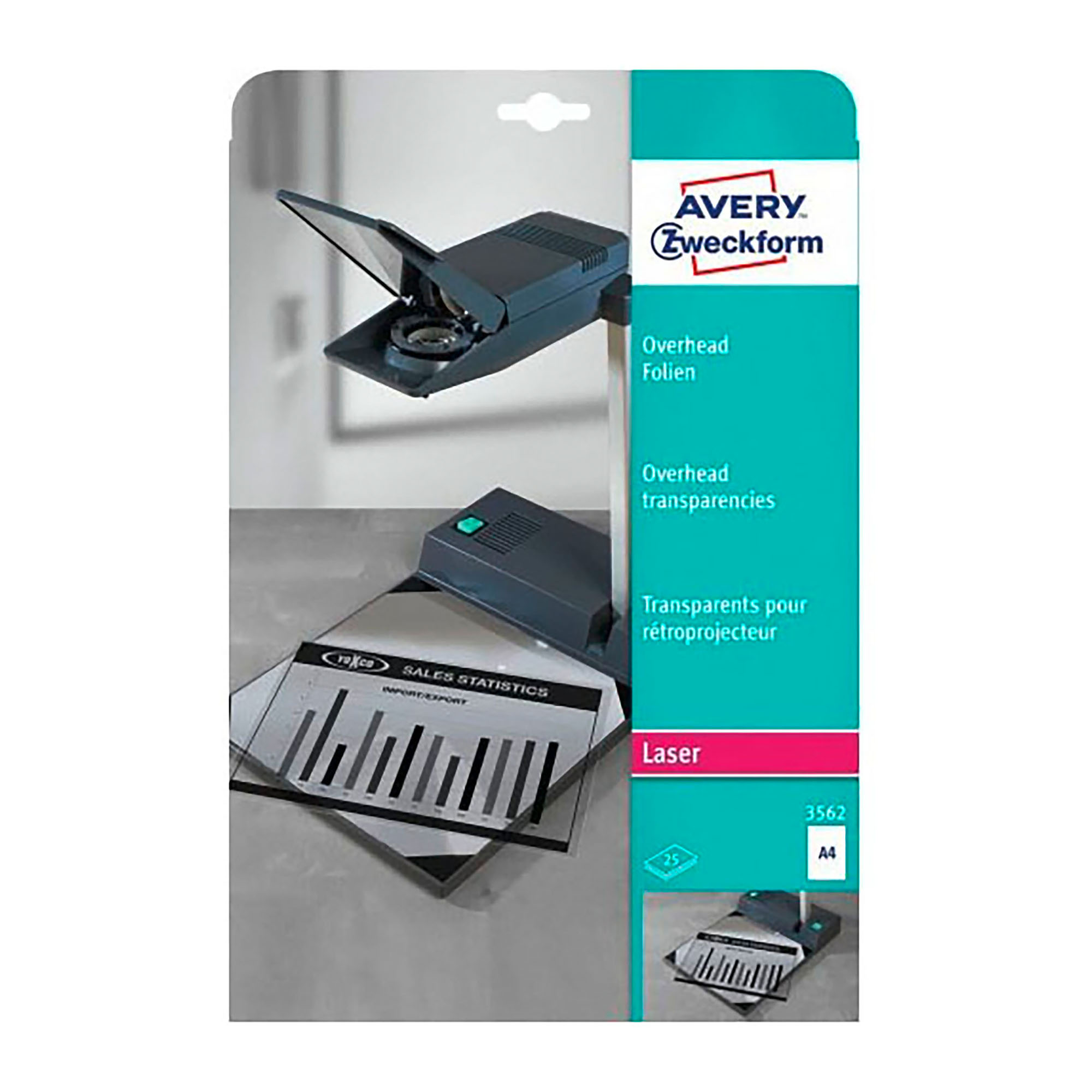 Transparencias A4 para láser Avery paquete de 25 hojas