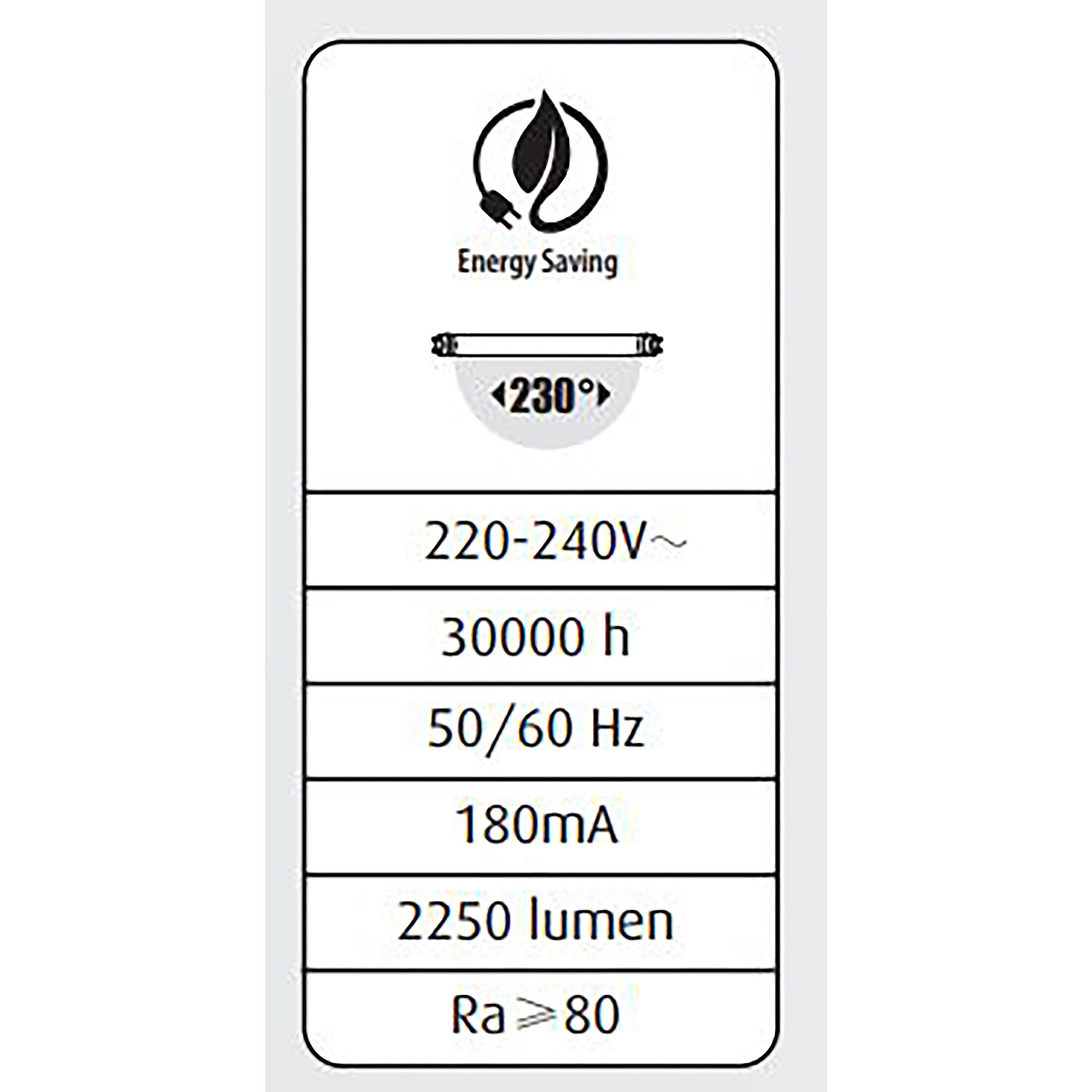 Descripción detalladaTubo de vidrio con película protectora:No compatible con regulador16 W consumidos (2250 lúmenes)ON/OFF x 50000Iluminación a 230°Luz cálida 4000KClasificación energética: DPotencia activa (W): 16Vida útil 15 años (basado en un promedio de 2h45 mn de funcionamiento por día) es decir 15000 h.