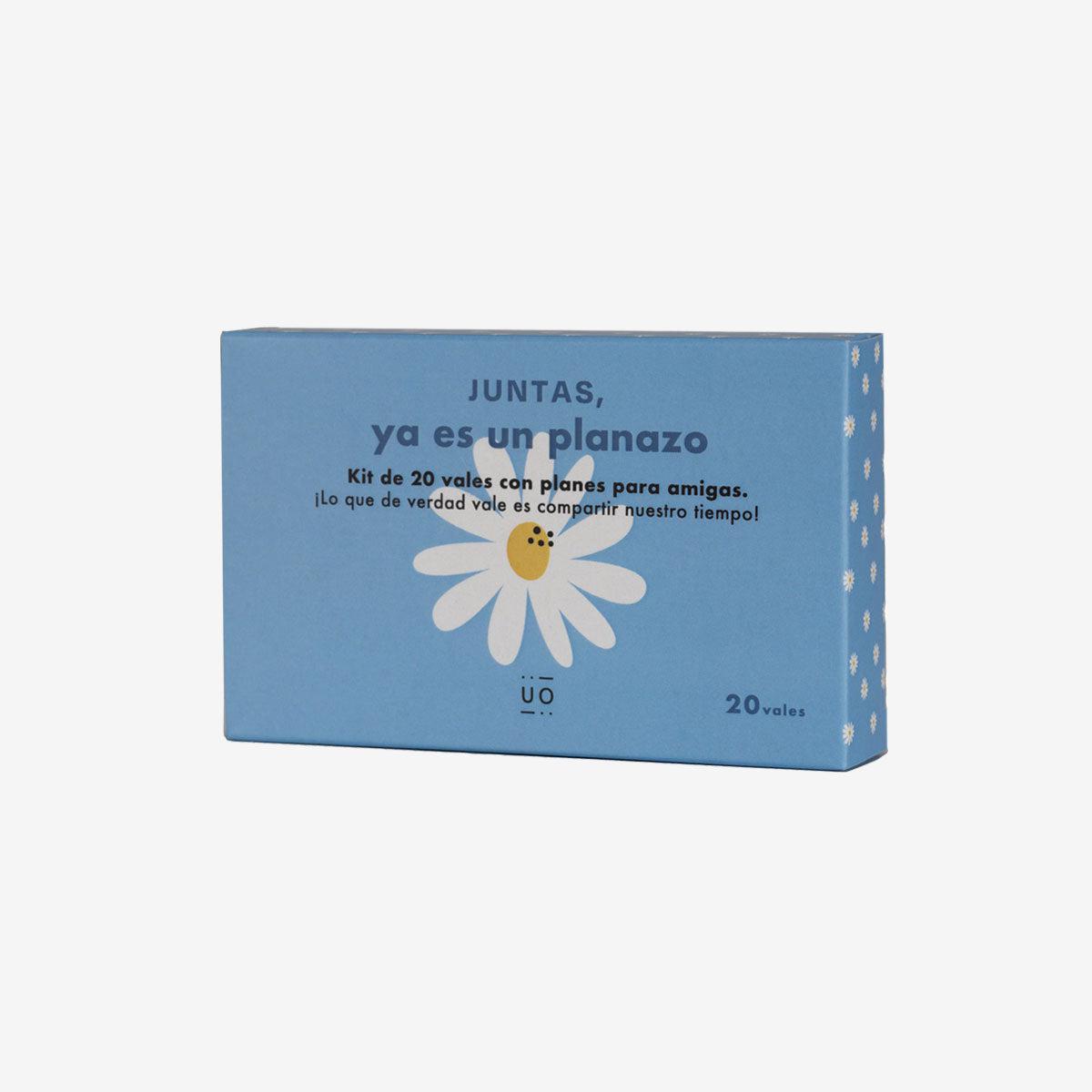 ¡Juntas ya es un planazo! Kit de 20 vales con planes para amigas. Esta cajita tiene 20 tokens de papel que valen por 20 planes divertidos para compartir con amigas. Disfrutaréis de vuestras charlas, paseos, sesiones Beauty, alguna escapada y, sobre todo, mucho mucho amor de la familia que se elige: tus amigas. ¡Porque disfrutar del tiempo con una amiga es el mejor regalo que alguien puede hacer(se)!