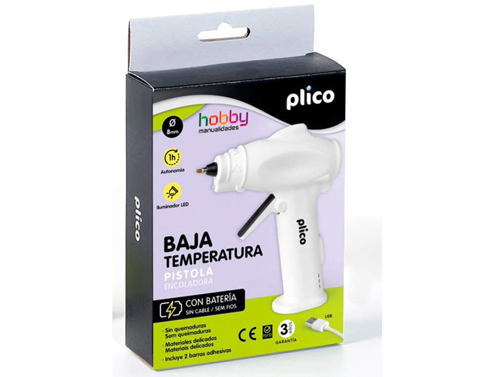 Pega al instante gran variedad de materiales. Su batería de litio le confiere autonomía de hasta 60 minutos. Ideal para trabajos manuales en la escuela y el hogar. Iluminación LED junto a la boquilla, mejora notablemente la visión del campo de trabajo. Indicador de carga LED que muestra el nivelde carga de la batería. Interruptor on/off permite ahorrar energía al des conectar la pistola cuando no se usa. Calentamiento. Máxima temperatura antes de tres minutos. Funde a baja temperatura por lo que es muy adecuada para pegar materiales sensibles al calor, como porexpán, globos, celofán, PVC blando, etc, a la vez que evita quemaduras. Puedes utilizar barras de pegamento de 8mm de diámetro. Con garantía de 3 años.