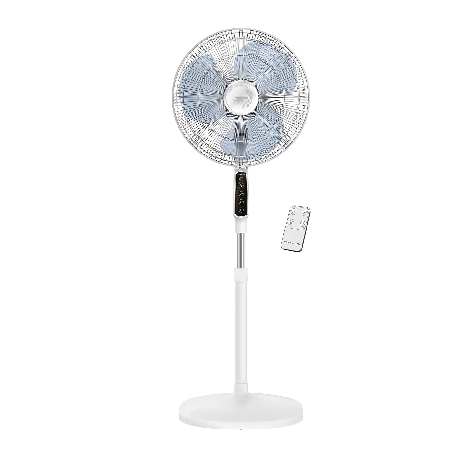 Con el ventilador de pie electrónico Essential + de Rowenta, disfrute de un refresco intenso en cualquier tranquilidad. Gracias a su funcionamiento de alto rendimiento y silencioso, sus 3 velocidades y su multitud de características prácticas como un control remoto, este ventilador será su compañero ideal durante el verano.