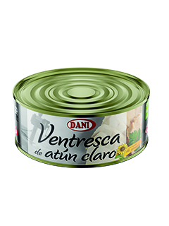 Ventreca de atún claro en conserva listo para tomar, de textura suave y jugosa.