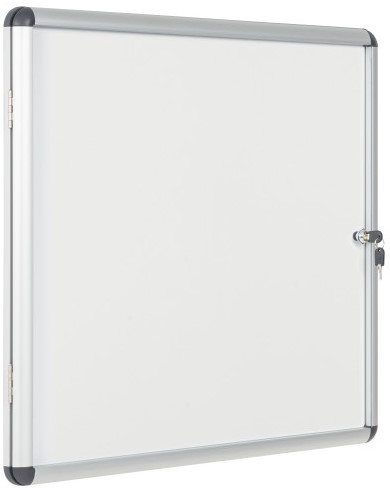 Vitrina anuncios interior con puerta batiente, fondo acero blanco magnetica, para fijar avisos y información en general.
