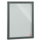Estética: marco perfilado de aluminio lacado poliéster. Esquinas redondeadas (10% fibra de vidrio), aspecto de acero. Fondo metal prelacado gris (RAL 9002). Modelo Cristal Securit 4 mm. Seguras: bisagras invertibles integradas en el marco y cerradura con doble cierre para mayor seguridad. Dimensiones: Alt. 101 x An. 74 cm. Para 9 hojas.