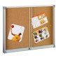 Estética: Sólida estructura en aluminio anodizado. Superficie de corcho de 5 mm de espesor. Soporte de madera aglomerada de 10 mm. Seguras: Puertas correderas mediante mecanismo deslizante de rodamientos. Cantoneras de seguridad. Espesor del cristal: 4 mm. Fondo 8 cm. Cerradura con llave. Dimensiones: Alt. 80 x An.100 cm.