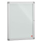 Marco de perfil de aluminio de 5 micras. Cantos inyectados de policarbonato con acabado plata. Fondo metal lacado gris magnético. Esquinas redondeadas para una mayor seguridad. Puertas batientes con cerradura de seguridad (2 llaves incluidas) Cristal Securit 4 mm. Fijación mural (tornillos incluidos). Medidas: Alt. 99 x An.73 x Fon. 3 cm.