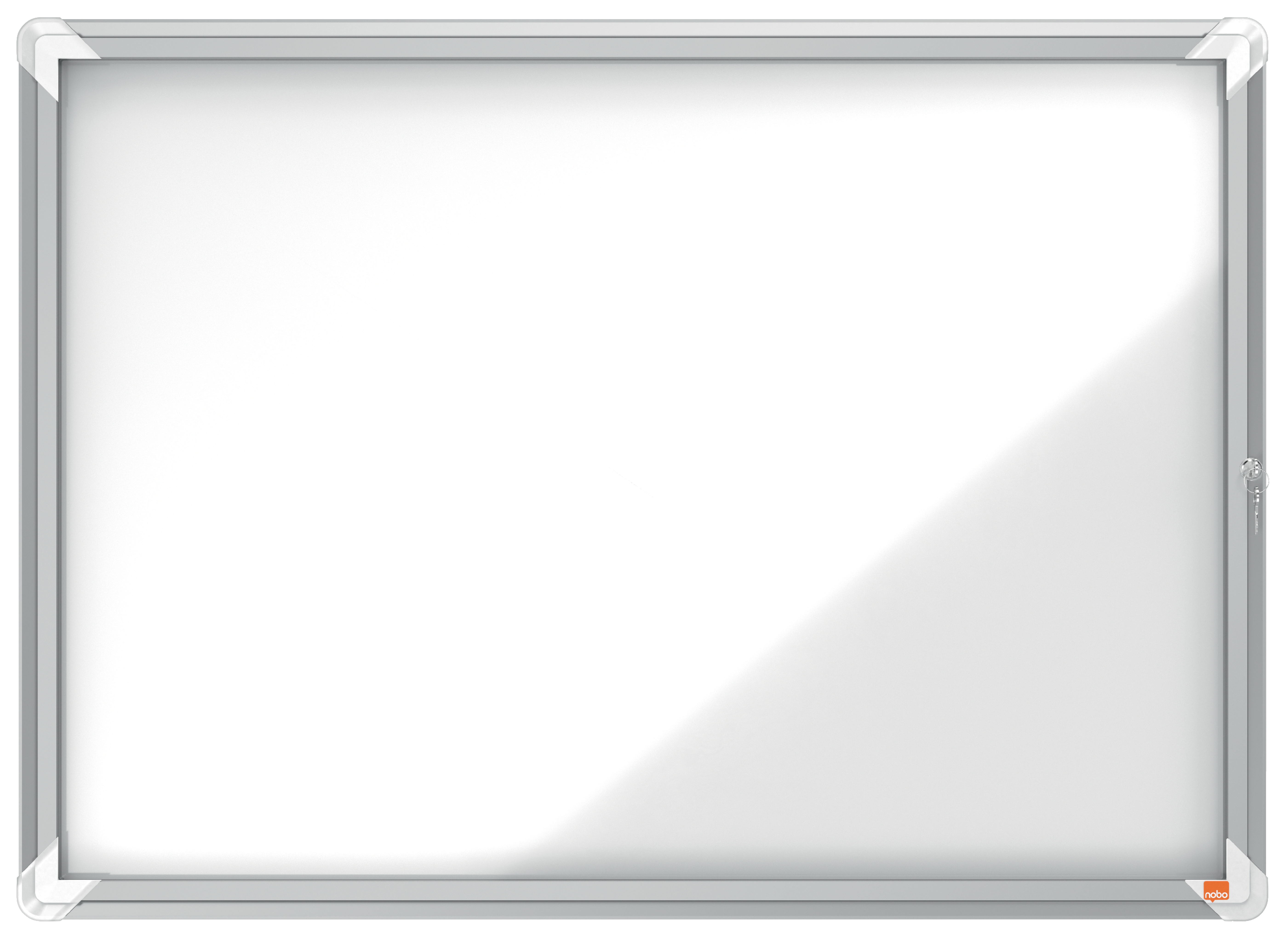 Vitrina con cerradura para interiores con superficie blanca magnética de borrado en seco y puerta de seguridad de cristal de 4 mm de grosor. Ideal para mostrar los documentos con seguridad Optimizada para diversas hojas tamaño A4 Bisagras laterales. Se suministra con los anclajes a la pared y dos llaves. Tamaño 8 × A4. Dimensiones externas: 692 × 972 × 37 mm.