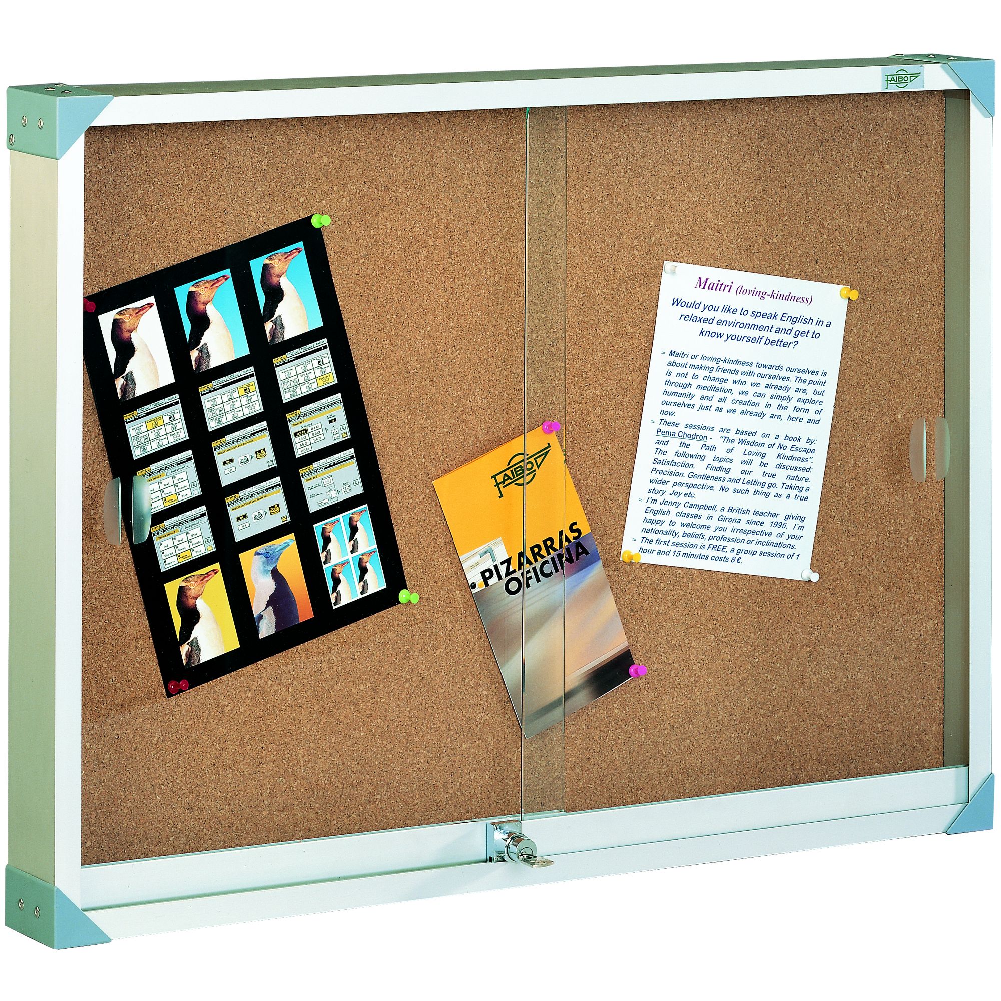 Estética: para interior. Sólida estructura en aluminio anonizado. Superfície de corcho de 5 mm. Soporte de madera aglomerada de 10 mm.