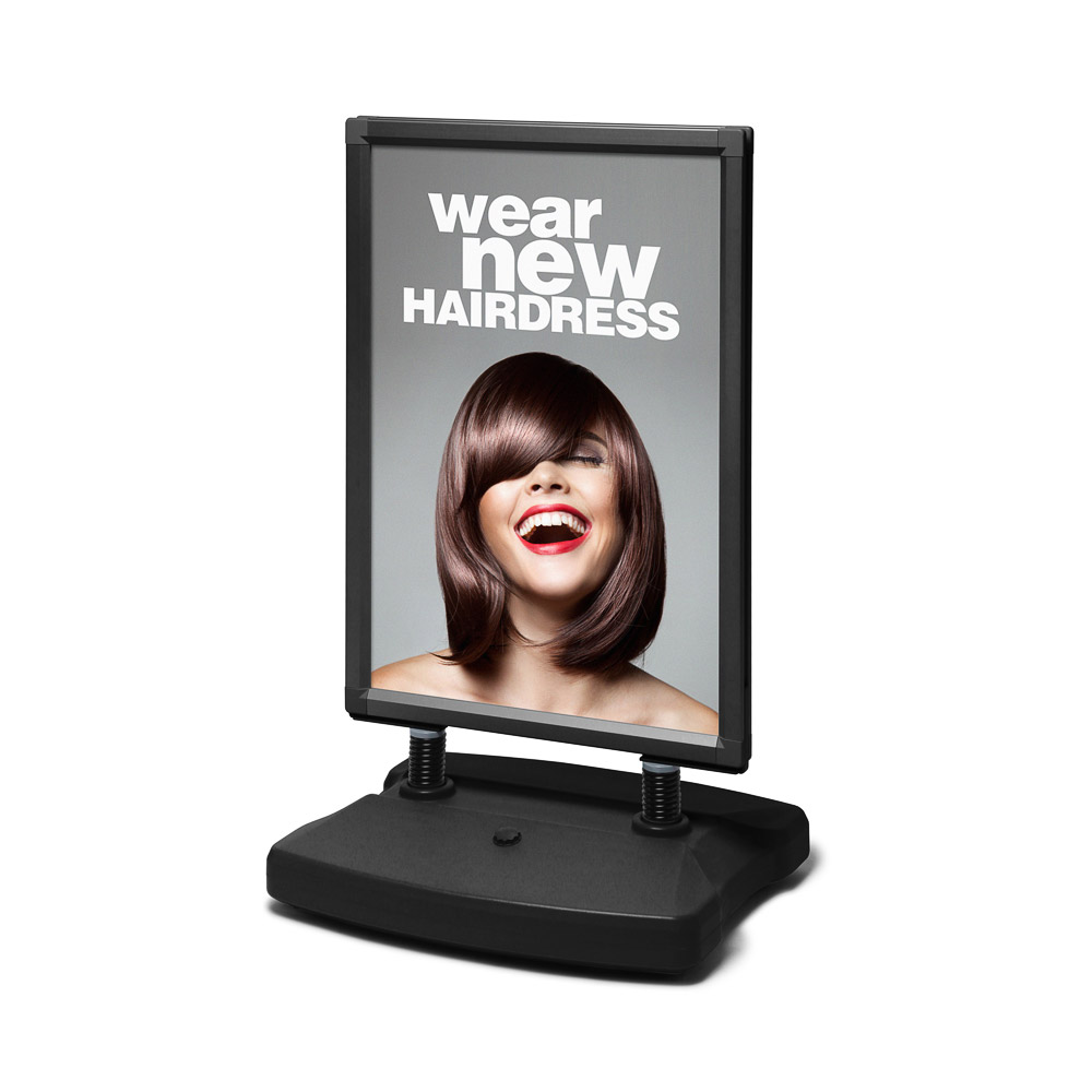 ¡Opte por publicidad exterior de doble cara con el Expositor publicitario Involcable City con base plástica! Ofrece estabilidad superior gracias a su base de plástico que puede rellenarse con agua o arena, además de contar con muelles de acero de alta calidad y un panel central resistente a impactos. Ofrecemos anuncio de doble cara en varios tamaños y en colores negro o plata. Mejore su presentación con soportes para folletos o carteles. Este caballete publicitario de suelo es ideal para la mayoría de aplicaciones exteriores. La pancarta superior es perfecta para Windtalker ® ??City A1. Potencie la visibilidad de su marca con nuestra solución de pancarta superior de doble cara. Puede instalarla fácilmente encima del Windtalker ® ??City para mostrar su logotipo o mensaje publicitario con facilidad. Resalte su logotipo o anuncio por ambos lados, garantizando visibilidad desde cualquier ángulo. La pancarta superior está diseñada exclusivamente para usar con el modelo Windtalker® City A1. Agregue su logotipo en la pancarta aquí.